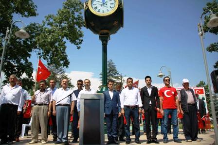 Program, Başta Cumhuriyetimizin kurucu Gazi Mustafa Kemal ATATÜRK ve silah arkadaşları, ebediyete intikal etmiş şehitlerimiz, gazilerimiz için bir dakikalık saygı duruşu, istiklal marşının okunmasının ardımdan, kuranı kerim okunup, dualar yapıldıktan sonra, terör kınanmıştır. Kınama sonrası yürüyüş yapılmıştır. Atılan değişik sloganlarla terör lanetlenmiştir.