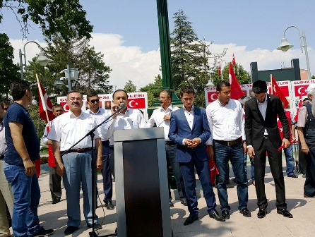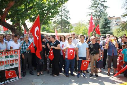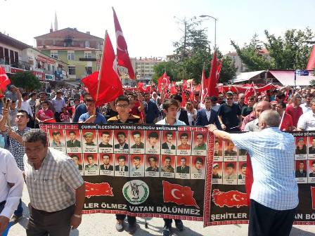 Konuşmaların ardından, Atatürk Caddesi nde çeşitli sloganlar atarak eski Şabanözü Kavşağı’na kadar yürüyen grup, burada saygı duruşunda bulunup İstiklal Marşı nı okuduktan sonra dağıldı.