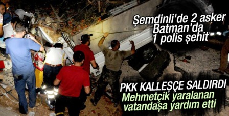 Yine Batman’ın Kozluk ilçesinde, bölücü terör örgütü PKK’lı teröristler tarafından yola döşenen patlayıcının zırhlı polis aracının geçişi sırasında infilak ettirilmesi sonucu 1 polis şehit olmuştur. 4 polis memurumuz ile 4 vatandaşımızda yaralanmıştır.
