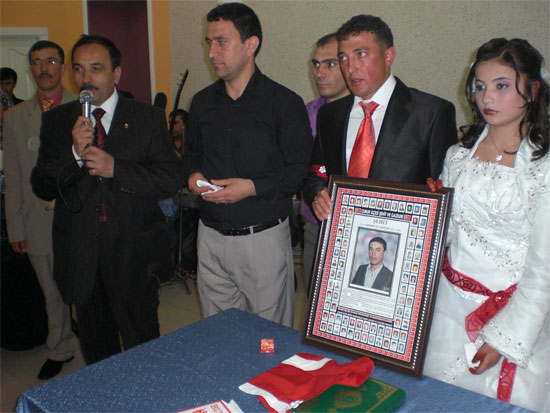 Şehit Ailesinin düğününe, akrabaları, davetli misafirler, komşuları, şehit aileleri, gaziler ve Çubuk ilçesi terör mağdurları dernek yönetim kurulu üyeleri katıldı.