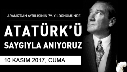 Cumhuriyetimizin kurucusu Gazi Mustafa Kemal ATATÜRK’ün vefatının 79. Yıl dönümünde, Atamızı, silah arkadaşlarını ve vatanımızın bölünmez bütünlüğü için canlarının feda eden aziz şehitlerimizi ve ebediyete intikal etmiş kahraman gazilerimizi rahmetle ve minnetle bir daha anıyoruz.