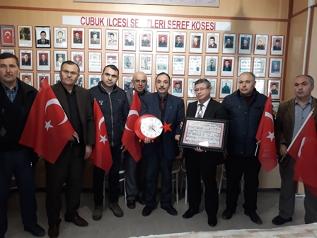 Konuşmaların ardından Avan tarafından, Çubuk Yıldırım Beyazıt Dernekler Federasyon Başkanı Ramazan Akpınar’a Türk Bayrağı ve Şehitler panosu hediye edildi. Akpınar’da Avan’a ay yıldızlı duvar saati hediye etti.