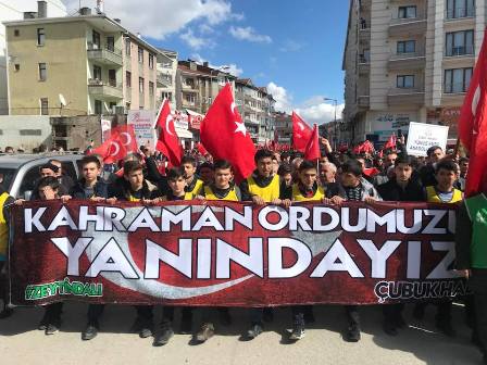 Çubuk ilçesinde Zeytin Dalı Harekatı na destek için; Yürü Mehmedim arkanda Çubuk var yürüyüşü düzenlendi.