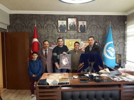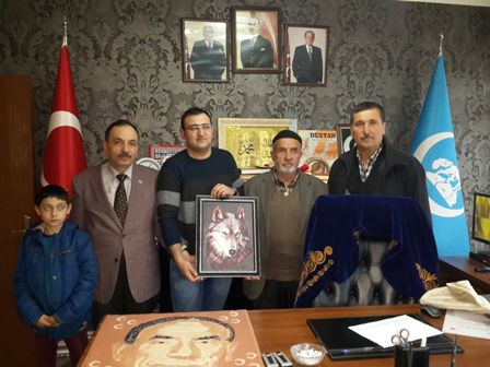 Ziyaretin anısına, Dernek Başkanı Zeki Avan tarafından, Ülkü Ocakları Çubuk İlçe Başkanı Burak Saraç’a üç boyutlu çerçeveli bozkurt panosu hediye edildi.