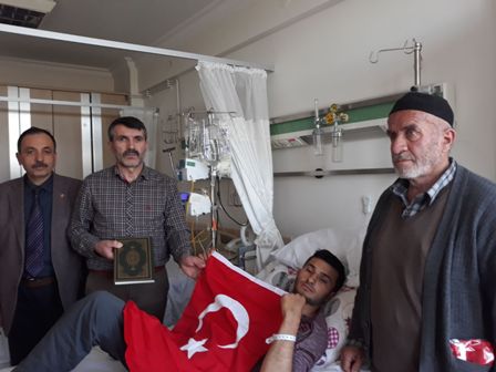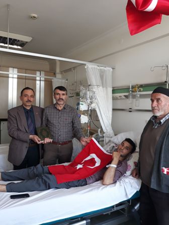 Çubuk Terör Mağdurları Derneği üyeleri, bölücü terör örgütü PKK’ya karşı yürütülen operasyonda yaralanan Jandarma Uzman Çavuş Halil Harmankaya’yı Gata’da ziyaret edildi. Ziyaret, Çubuk Terör Mağdurları Dernek Başkanı Zeki Avan, Şehit babası Ahmet Şahin ve Şehit babası Ramazan Gergin tarafından gerçekleştirildi.