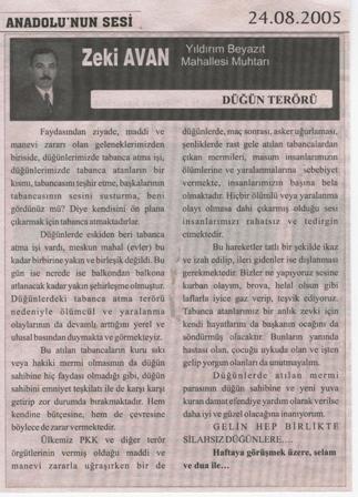 DÜĞÜNLERDE SİLAH ATILMAMASI İÇİN ELİMDEN GELENİ YAPMAYA ÇALIŞTIM. BAZEN BAŞARILI OLDUM. BAZENDE BAŞARILI OLAMADIM.