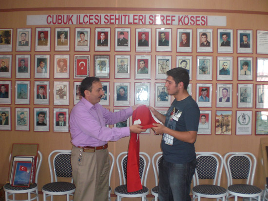 Çubuk ilçesi Terör Mağdurları Derneğimizin törenlerinde, festivalde, derneğin tadilatında ve derneğimizin gerekli işlerinde koşturan genç asker kardeşimiz Ali Ahmet KOZ’un 1989/3 devre olarak vatani vazifesine gitmesi nedeniyle derneğimize yapmış olduğu veda ziyaretinde, kardeşimize Türk bayrağı hediye edildi.