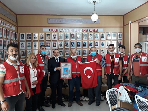Ziyaretin anısına, Dernek Başkanı Zeki Avan tarafından Türk Kızılay Derneği Çubuk Şube Başkanı Selahattin Koç’a Türk Bayrağı ve Şehitler Panosu hediye edildi.