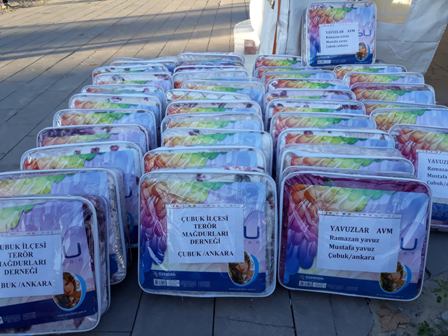 Çubuk ilçesi Terör Mağdurları Derneği olarak onların yanlarında olduğumuzu hissettirmek için, imkânlarımız dâhilinde Çubuk Yavuz AVM ile birlikte her zaman olduğu gibi acil ihtiyaçlardan olan battaniye göndermeye karar verdik. Deprem bölgesine gönderilmek üzerine Türk Kızılay’ı Çubuk Şubesi tarafından düzenlenen kampanya çerçevesinde 41 adet çift kişilik yeni battaniyeler gönderilmiştir.