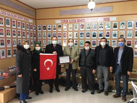 Ziyaretin anısına, Ak Parti Çubuk İlçe Başkanı Erhan Kuşcu’ya, Dernek Başkanı Zeki Avan tarafından Türk Bayrağı ve şehitler panosu hediye edildi.