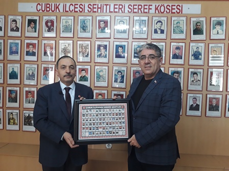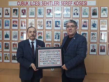 Ziyaretin anısına Dernek Başkan Zeki Avan tarafından, Çubuk Yıldırım Beyazıt Anadolu Lisesi Müdür Yardımcısı Halis Demirgil’e Çubuk İlçesinin Şehit resimlerinin bulunduğu şehitler panosu hediye edildi.