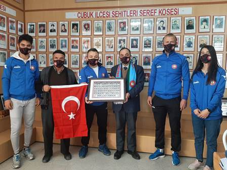 Ziyaretin anısına, dernek başkanı Zeki Avan tarafından, Çubuk Belediyesi Engelsiz Spor Kulübü Başkanı Ahmet Koçyiğit’e Türk Bayrağı ve Şehitler panosu hediye edildi.
