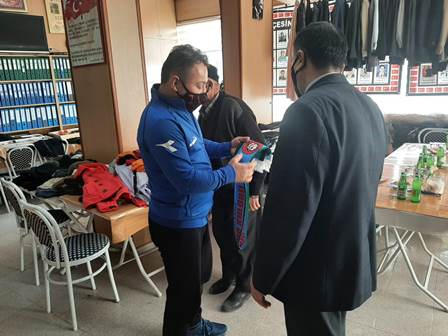 Çubuk Belediyesi Engelsiz Spor Kulübü Başkanı Ahmet Koçyiğit’te, Dernek Başkanı Zeki Avan’a kulübün kaşkol ve maskesini hediye etti.
