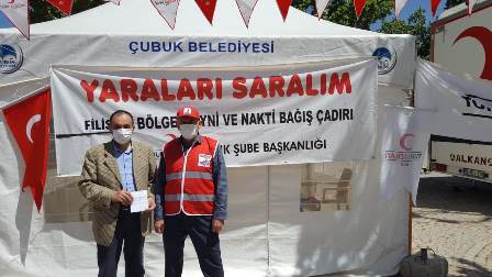 Türk Kızılayı Başkan Yardımcısı Mehmet Arslan’da yapmış olduğu konuşmasında: “Çubuk ilçesi terör mağdurları dernek başkanı Zeki Avan, Atatürk Parkında, Türk Kızılayı Çubuk Şubesi tarafından, Filistin halkına gönderilmek üzerine açılan yardım kampanyası çadırını ziyaret edip, maddi ve manevi destekte bulunmalarından dolayı, çok teşekkür ediyoruz. Açmış olduğumuz kampanyalarımıza ve yapmış olduğumuz tüm faaliyetlerimize bugüne kadar destek vermişlerdir. Bugün de, Çubuk şehit aileleri ve gazileri olarak bizim yanımızda olup, açmış olduğumuz yardım kampanyasına destek vermeniz bizlere güç ve moral vermiştir,” dedi.