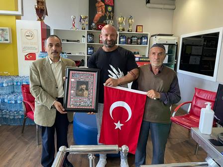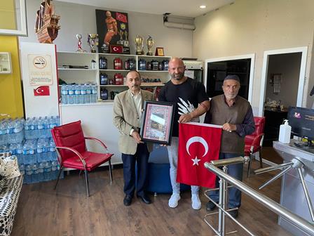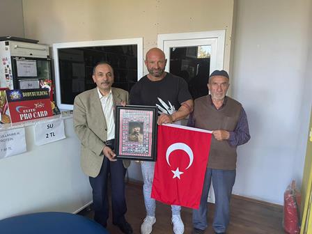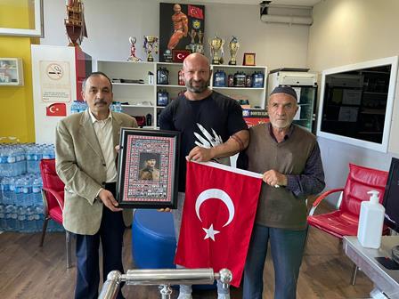 Ziyaretin anısına, dernek başkanı Zeki Avan tarafından, Vücut geliştirme Sporcusu ve Spor Antrenörü Volkan Toptanoğlu’na Türk Bayrağı ve Şehitler panosu hediye edildi.