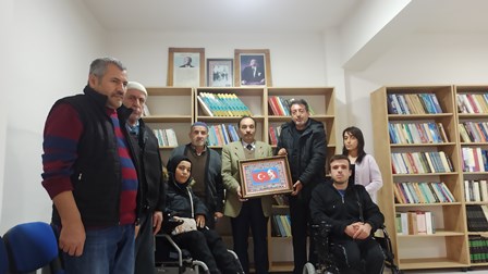 Ziyaretin anısına, Dernek Başkanı Zeki Avan tarafından, Çubuk Belediyesi Engelsiz Yaşam Merkezi Başkanı Sebahattin Karahanlı’a Şehitler panosu hediye edildi.