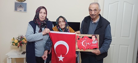 Ziyaretin anısına Dernek Başkanı Zeki Avan tarafından Kıbrıs Gazisi Murat Tursunoğlu’nun annesine, Gazisi Murat Tursunoğlu’nun fotoğraflı duvar saati ve Türk Bayrağı hediye edildi.