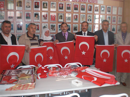 Ayrıca Sayın Mustafa KUMCUOĞLU’nun şehit ailelerine ve gazilerimize hediye edilen Türk Bayraklarının alınmasındaki maddi katkılarından ve derneğimize 500,00 TL bağış yapacağının sözünü vermesinden dolayı kendisine çok teşekkür ediyorum.” Dedi.