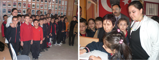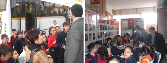Özel Aksoy Koleji Sınıf Öğretmenleri Akkız AKARSU ve Özlem ERSOY AÇIKGÖZ ile Öğrencilerini, Dernek Başkanı Zeki AVAN, Şehit babası Ramazan GERGİN, Şehit babası Ahmet ŞAHİN ve Güneydoğu Gazisi Hasan YALAMA ile birlikte karşıladılar.