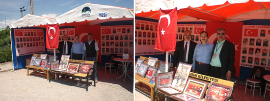 Çubuk Belediye tarafından derneğimize tahsis edilen stantlara, derneğimiz adına açmış olduğumuz sergide, ilçemizin şehitleri, gazilerinin resimlerinin bulunduğu panoların yanında, şehit ve gazilerle ilgili değişik panoların yer aldığı sergi büyük ilgi gördü.