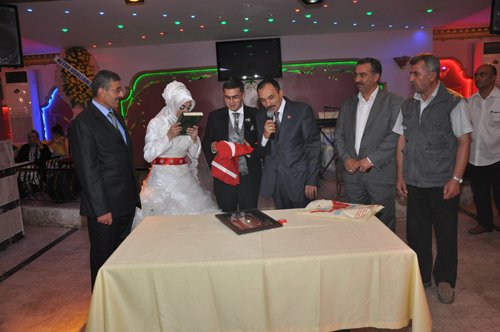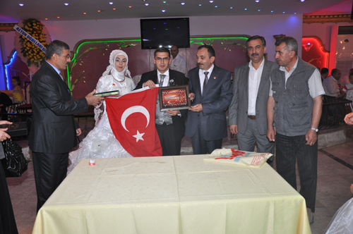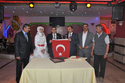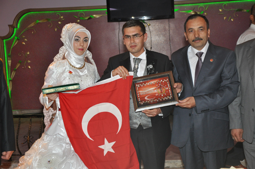 Dernek başkanı Zeki AVAN, Damat Ömer ÖZÇELİK’e, Türk Bayrağı ve Şehit resimlerinin bulunduğu saatli teşekkür belgesini; Gelin hanım Ayşe ARSLAN’da Kuranı Kerim ve küçük altın hediye etti.