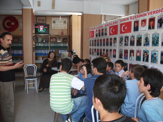 Çubuk Aile Yaşam Merkezi Eğitmeni Özlem ÇELİK ile birlikte derneği ziyarete gelen Çubuk Aile Yaşam Merkezi öğrencilerini, Dernek Başkanı Zeki AVAN, Şehit babası Ramazan GERGİN, Şehit babası Ahmet ŞAHİN ve Güneydoğu Gazisi Hasan YALAMA karşıladılar