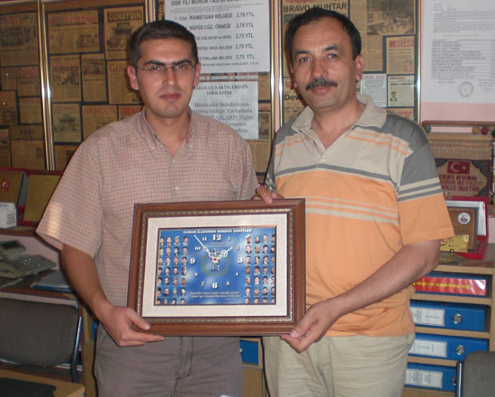 Dernek Başkanı Zeki AVAN’a, Vatanı vazifesini yapmak için, askerlik görevine gitmek üzere vedalaşmaya gelen Bilgisayar Öğretmeni Ömer ÖZÇELİK’e Zeki AVAN tarafından günün anısına, Çubuk ilçesinin Şehitlerinin resmi bulunan duvar saati hediye edildi.