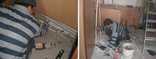Yine suntalamların dernek kolon ve kirişlere montaj öncesi, su tesisatında ihtiyaç duyulan yerlere su tesisatının alt yapısını, su tesisat plastik boru ve aksamını sucu ustası Lokman UÇ’a, yaptırıldı.