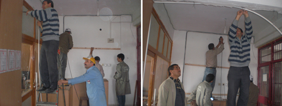 Suntalamların dernek kolon ve kirişlere montaj öncesi, internet, telefon ve derneğinin güvenlik siteminin alt yapısı olan elektronik kablo ve aksamların, Usta Bilgisayara yaptırıldı.