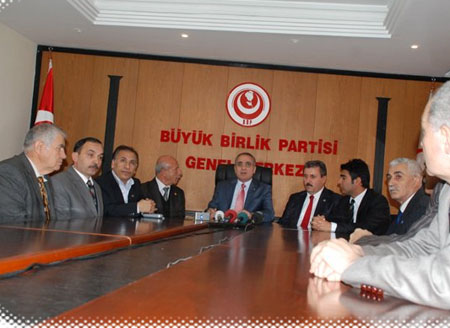 BBP Genel Başkanı Yalçın Topçu, kabulde yaptığı konuşmada şunları kaydetti: Türkiye nin yıllardır terörden çok sıkıntı çektiğini ama kimsenin bu ülkeyi bölmeye gücünün yetmeyeceğini söyledi. Büyük Birlik Partisi Genel Başkanı Yalçın Topçu, binlerce vatan evladının ülkesi için canını feda ettiğini ve canı pahasına ülkesini koruduğunu ifade ederek, Barış ve huzur elbette istiyoruz. Bunu yaparken hassasiyetlerimize dikkat etmeliyiz diye konuştu.