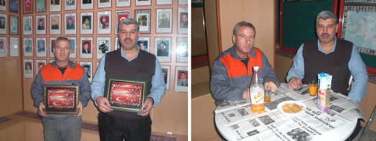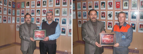 Daha önceden derneğimizin bazı işlerinin yapılmasına yardımcı olan eski Kademe Amiri Hacı Bayram ERKOÇ ve Kademe Demirci Usta Adem ÖZBAŞ derneğimiz adına teşekkür belgesi ile onura edilmişlerdir.
