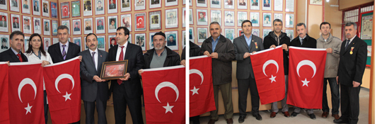 Ziyaretin anısına Başkomiser Yahya Çelik’e, Komiser Kamil Lale’ye ve heyette bulunan Polis Memurlarına, Dernek Başkanı Avan ve Şehit babası Ramazan Gergin, Ahmet Şahin ve Gazi Hasan Yalama tarafından, şehitler duvar saati ve Türk Bayrakları hediye edildi.