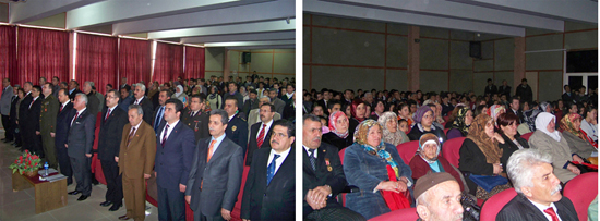 Çanakkale Savaşı yla ilgili slayt gösterisi ve Kınalı Hasan adlı oyunun sergilenmesi sırasında, salonda bulunan şehit yakınları ve protokol gözyaşlarına hakim olamadı.