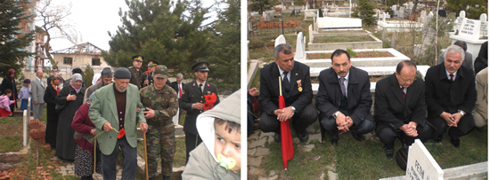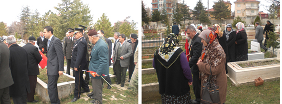 Halk Eğitimdeki programın ardından protokol, şehit yakınları ve askerlerden oluşan heyet, ilçe merkezinde bulunan Paşa Mezarlığındaki Şehit Mezarlarını ziyaret ederek, burada Çubuk Müftülüğü tarafından okunan Kuran’ı Kerim ve yapılan dualarla bütün şehitlerimiz rahmetle anıldılar