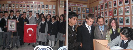 Dernek Başkanı Zeki AVAN tarafından öğrencilere, Derneğin yapmış olduğu faaliyetler hakkında bilgi vermesinden sonra, dernekte bulunan şehit ve gazilerin resimlerini tek, tek gösterip, şehit ve gazilerin kısa öz geçmişleri hakkında bilgi verdi.