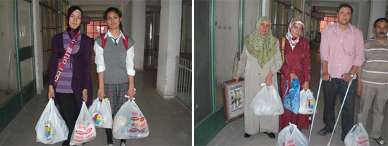 2. İlçe Merkezindeki gelemeyecek durumdaki aileleri, arkadaşlarımızdan birinin aracıyla mahalle mahalle dağıtımını yaparak evlerinde imza karşılığında teslim ediyoruz.