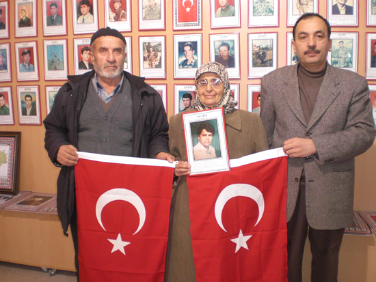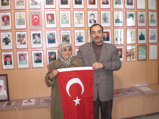 Daha sonra ziyaretin anısına Dernek Başkanı Zeki Avan tarafından, Şehit Muhabere Er Mustafa Mayuk’un annesi Behiye Mayuk’a Türk Bayrağı hediye edildi.