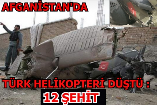 Türkiye’nin, Afganistan’daki NATO misyonu kapsamında Kabil’deki Bölge Komutanlığında en son çıkmış oldukları görevleri sırasında askerlerimizi taşıyan helikopterin düşmesi sonucunda 12 askerimiz şehit olmuştur.