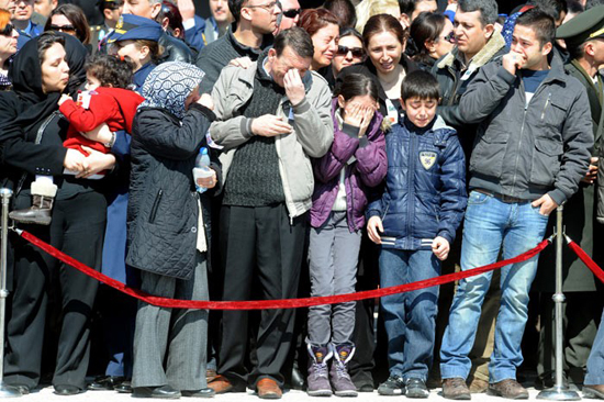 Afganistan ın başkenti Kabil de düşen helikopterde şehit olan 12 Türk askerinin ebediyete uğurlanışında büyük hüzün vardı. Türkiye yi yasa boğan kazada şehit olan askerler için ilk tören Mamak taki 4 üncü Kolordu Komutanlığı na bağlı Barış Gücü Tugay Komutanlığı nda düzenlendi. Şehit Mühendis Binbaşı Mithat Çolak, Kara Pilot Yüzbaşı Adil Erdoğan, İkmal Yüzbaşı İlker Aydın, Kara Pilot Üsteğmen Tahsin Barutçu ve Sağlık Kıdemli Başçavuş Salih Helvacı için Kocatepe Camisi nde cenaze töreni düzenlenirken diğer şehitlerin cenazeleri, Etimesgut Askeri Havaalanı ndan memleketlerine gönderildi. Şehit çocuklarının babalarının tabutlarına koşmaları ve feryatları ise yürekleri dağladı.