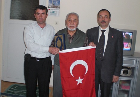 Ziyaretin anısına, Dernek başkanı Zeki Avan tarafından Şehit Babası Satılmış Çakır’a, Kuranı Kerim Meali ve Türk Bayrağı hediye edildi.