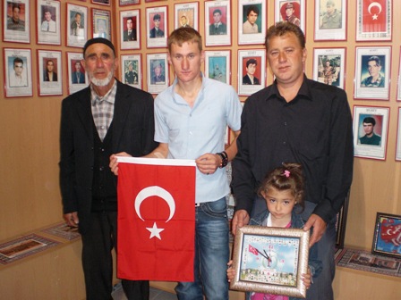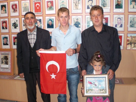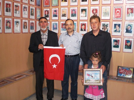 Ziyaretin anısına, Dernek başkanı Zeki Avan tarafından, şehit babası İzzet Eğin’e, Türk Bayrağı ve şehitler duvar saati hediye edildi.