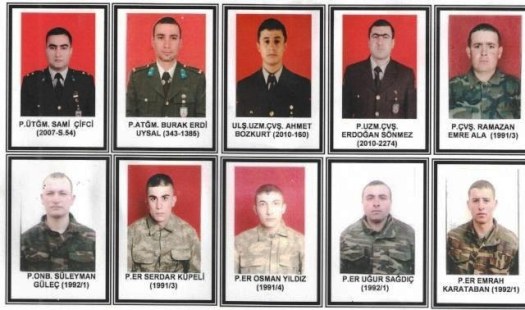 Vatanımızın bölünmez bütünlüğü ve milletimizin huzuru için görev yaparken şehit düşen askerlerimiz, Piyade Üsteğmen Sami Çiftçi’ye Piyade Asteğmen Burak Erdi’ye, Uzman Çavuş Ahmet Bozkurt’a, Uzman Çavuş Erdoğan Sönmez’e, Çavuş Ramazan Emre Ala’ya, Onbaşı Süleyman Güleç’e, er Serdar Küpeli’ye, er Osman Yıldız’a, er Uğur Sağdıç’a ve er Emrah Karataban’a, Allah’tan rahmet diliyor, Ailelerine, Türk Milletine ve Türk Silahlı Kuvvetlerine başsağlığı, yaralı askerlerimize de acil şifalar diliyoruz.