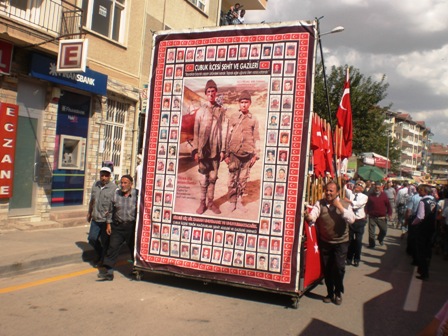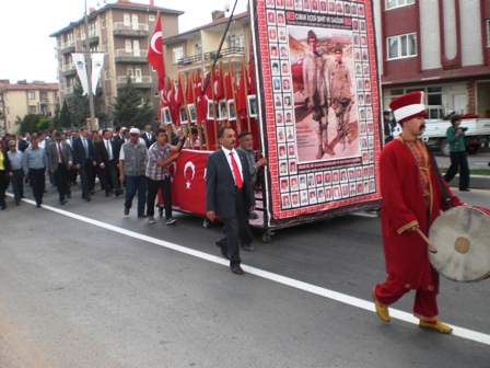 Daha önce den derneğimiz tarafından festivaller için yaptırılan 3,5metre boyunda, 2,5metre genişliğindeki Çanakkale’nin isimsiz kahramanlarının etrafına, Çubuk İlçesinin 58 Şehit ve 23 Gazisinin resimlerinin yer aldığı seyyar şehit ve gaziler anıtı panonun devasa görünümünü, kortej yürüyüşünde ve açmış olduğumuz stantta dikkat çekmeye devam etmektedir.
