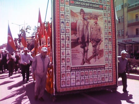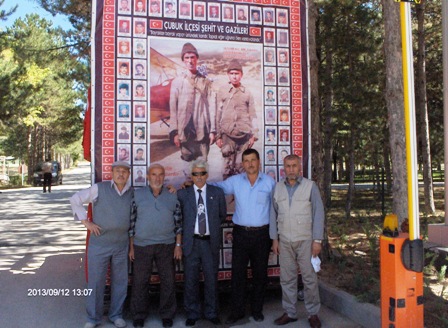 Daha önce den derneğimiz tarafından festivaller için yaptırılan 3,5metre boyunda, 2,5metre genişliğindeki Çanakkale’nin isimsiz kahramanlarının etrafına, Çubuk İlçesinin 58 Şehit ve 23 Gazisinin resimlerinin yer aldığı seyyar şehit ve gaziler anıtı panonun devasa görünümünü, kortej yürüyüşünde ve açmış olduğumuz stantta dikkat çekmeye devam etmektedir.