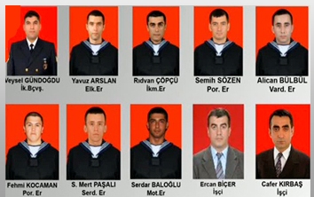 Görev şehitlerimiz İkmal Başçavuş Veysel Gündoğdu’ya (Gaziantep), deniz erleri Süleyman Mert Paşalı’ya, (Çanakkale), Fehmi Kocaman’a (Uşak-Ovacık), Ali Can Bülbül’e (Isparta), Serdar Baloğlu’na (Balıkesir-Gönen), Rıdvan Çöpçü’ye (Samsun-Ladik), Semih Sözen’e (Erzurum-Oltu), Er Yavuz Erslan’a, tersane işçileri Cafer Kırbaş ve Ercan Biçer’e (İzmir), Allahtan rahmet, şehit ailelerine, yakınlarına, Türk Silahlı Kuvvetlerine ve Türk milletine başsağlığı, yaralı askerlerimize de acil şifalar diliyoruz.